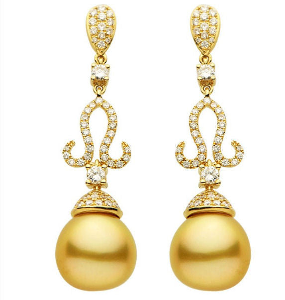 1.04 Ct Tw Diamond & Golden South Sea Cultured Pearl Earrings