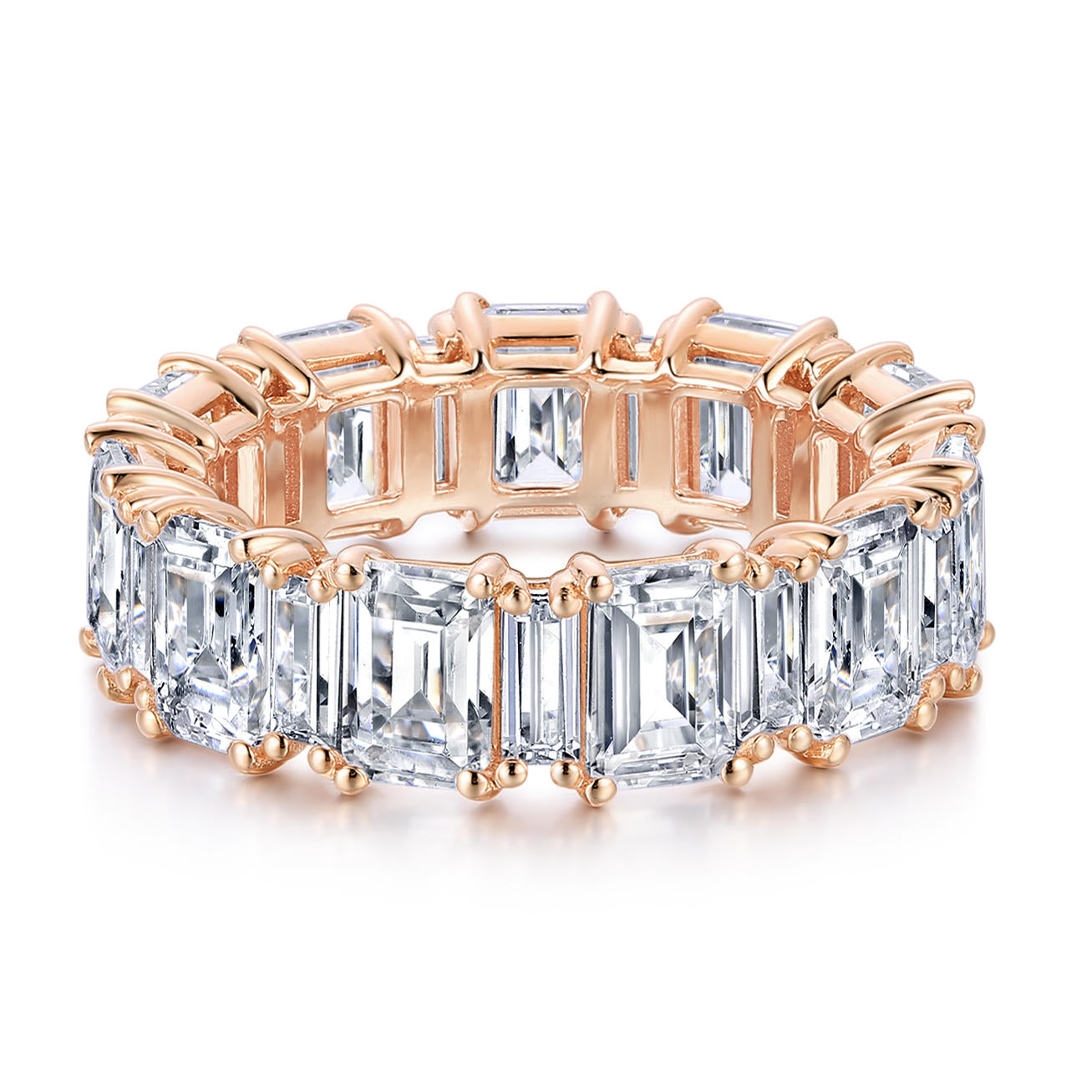 Celebrate everlasting brilliance with this breathtaking diamond eternity band. Featuring perfectly matched emerald-cut and baguette cut diamonds set seamlessly with approximately 10.45 carats total weight. This ring radiates sophistication and sparkle from every angle. Offered in your choice of white, yellow, or rose gold; as well as platinum. It’s a versatile piece that’s perfect as a wedding band, anniversary ring, or luxurious stackable statement.