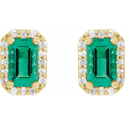 14K Yellow Lab-Grown Emerald & 1/8 CTW Natural Diamond Halo-Style Earrings