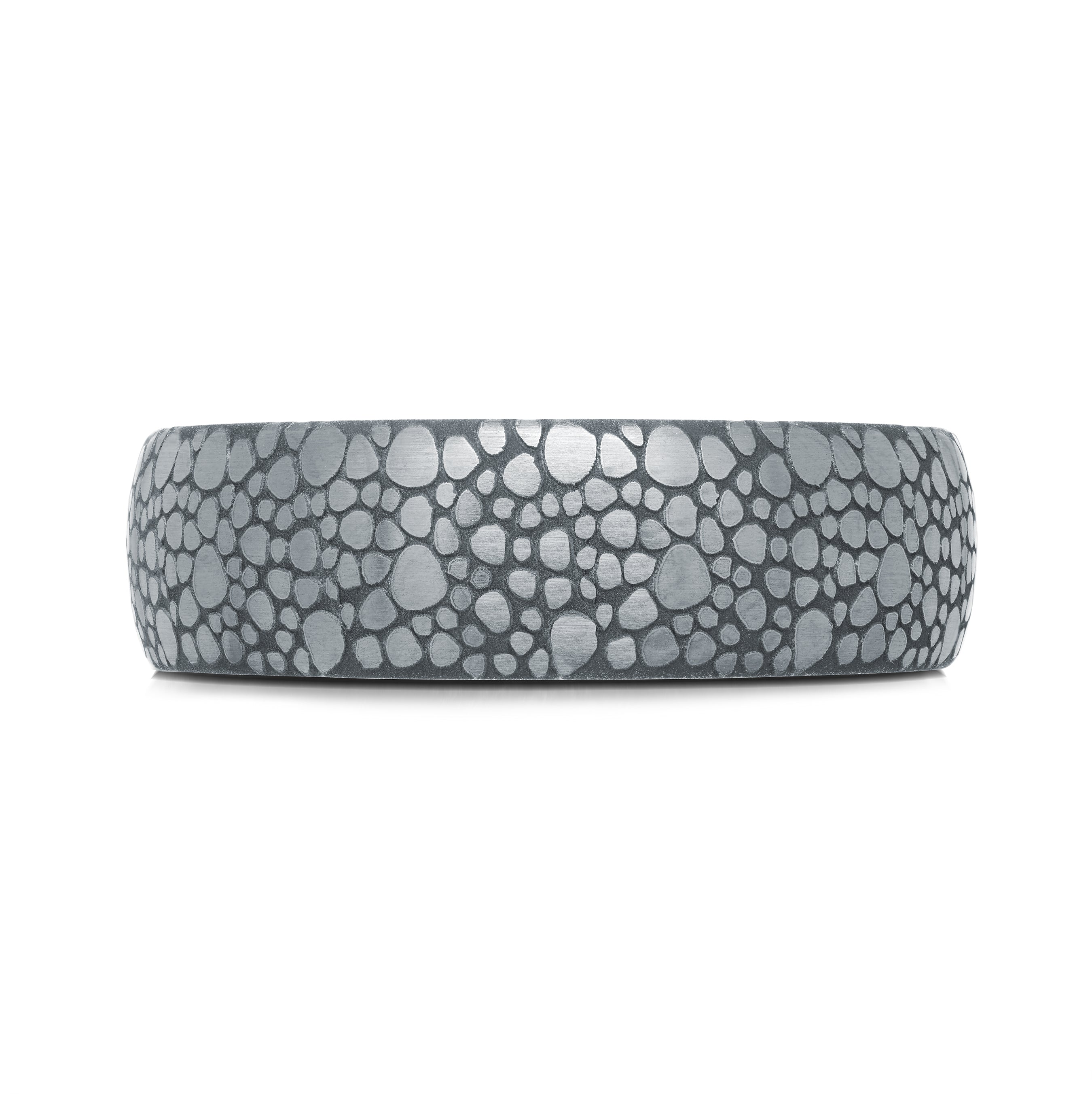 Bold and undeniably unique, this 6.5mm tantalum wedding band features a stingray-skin inspired pebble texture. The raised dot-like pattern across the band creates a modern and tactile surface that stands out from traditional styles. Made from durable and hypoallergenic tantalum, this comfort-fit ring is ideal for grooms who want a ring that’s both edgy and sophisticated. Whether you're drawn to its oceanic inspiration or just love the unconventional design, this ring makes a lasting impression.