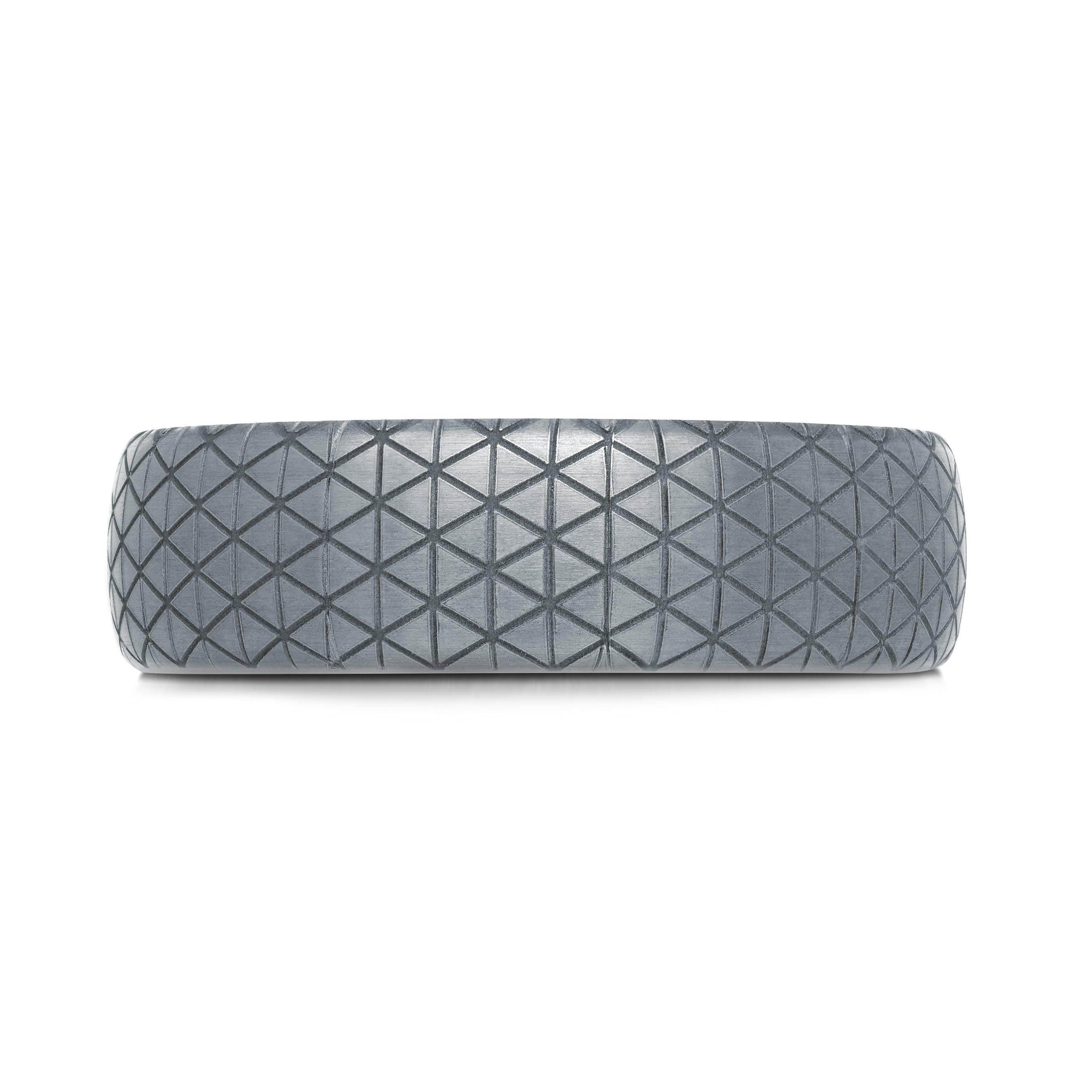 This 6.5mm tantalum wedding band features a sleek diamond-grid texture engraved around the band, offering a bold and structured design. The geometric pattern adds visual depth and modern edge, while the brushed finish enhances the cool-toned allure of tantalum. Designed for comfort and built to last, this hypoallergenic band is perfect for those who appreciate a fusion of contemporary style and rugged durability.