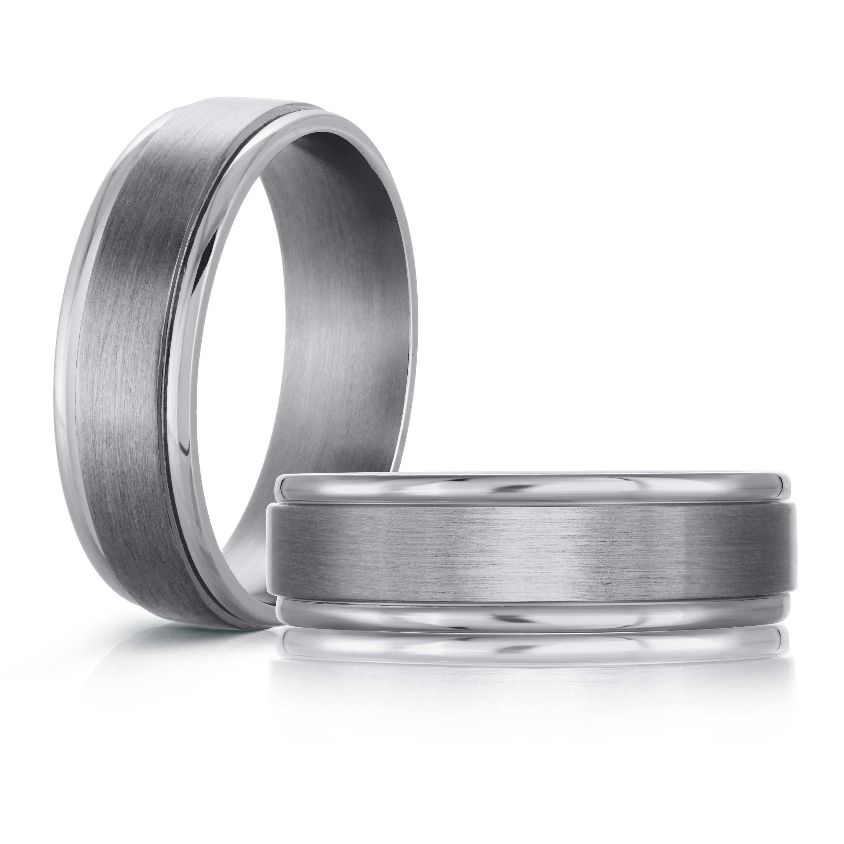 Understated yet distinctive, this 7mm tantalum wedding band features a brushed center surface framed by sleek high-polish grooves on both edges. Crafted from rare tantalum, this ring offers exceptional durability, a naturally rich gray tone, and a comfortable fit for daily wear. The subtle groove detailing adds depth and sophistication, making it the perfect blend of modern design and classic elegance for today’s groom.