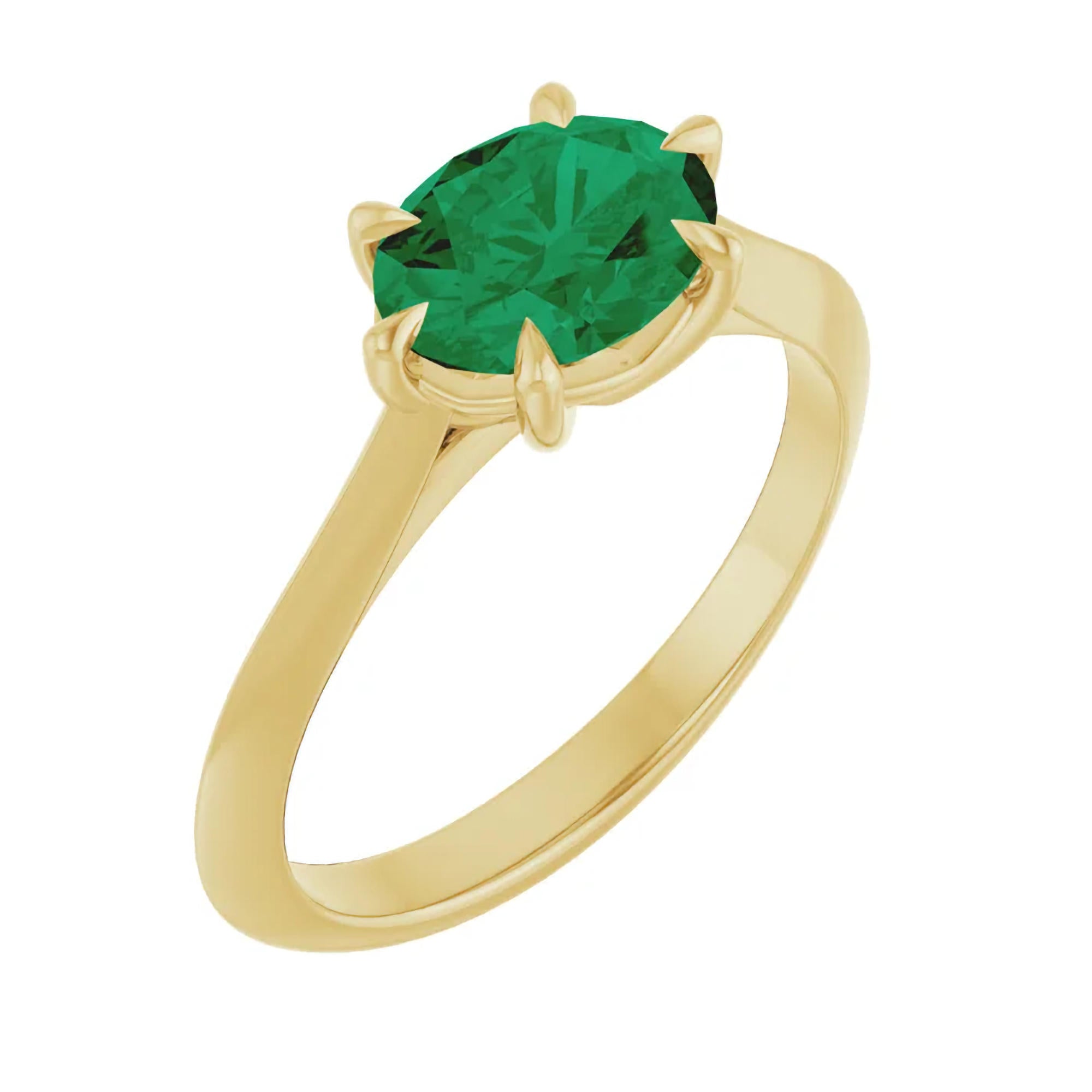 Whether you’re drawn to the symbolism of emerald as a stone of love and renewal or simply captivated by its bold green hue, this solitaire engagement ring is a timeless choice. It can be perfectly worn alone or paired with a wedding band for a beautifully layered look.
